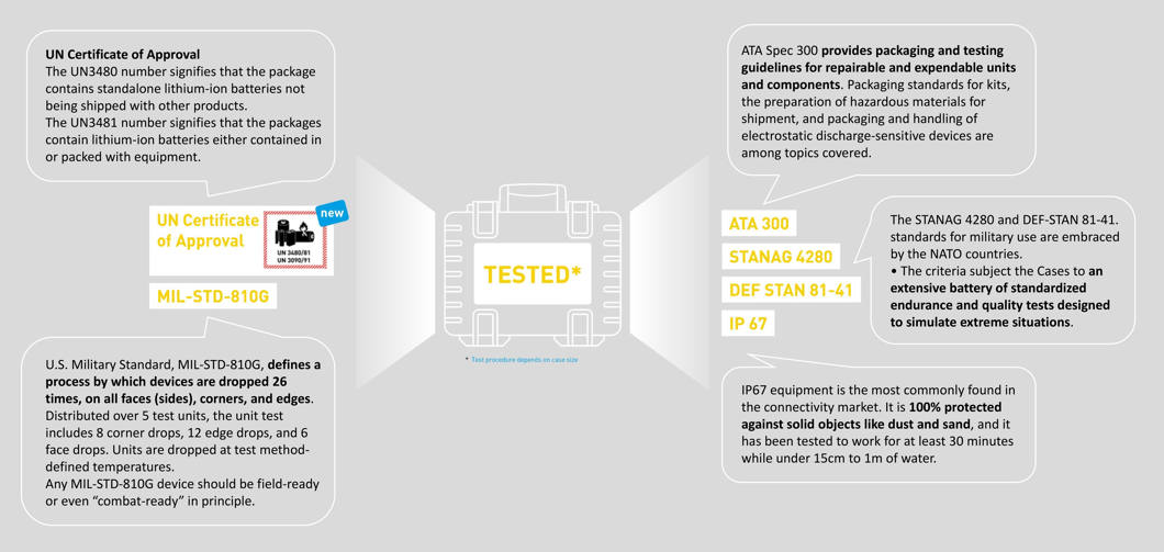 | Certificates | STANAG 4280, DEF STAN 81-41, ATA300 |