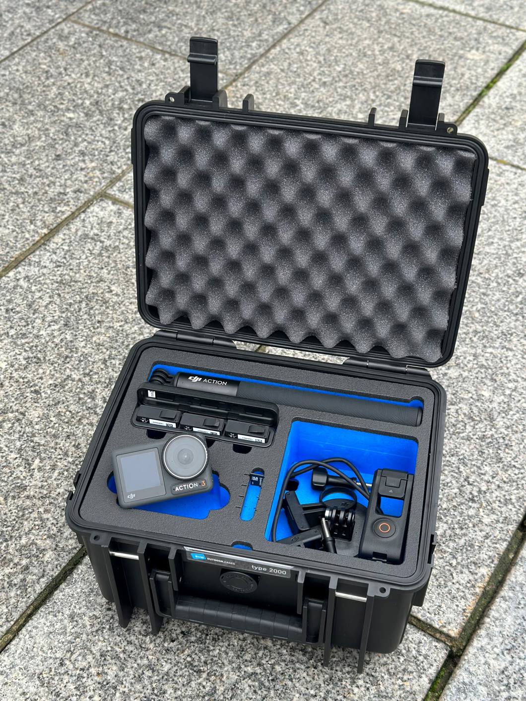 VŠETKO MUSÍ PASOVAŤ: akčná kamera nie je lacná, preto by mala byť počas prepravy chránená čo najlepšie spolu so svojím vybavením. B&W Case 2000 s penovým výliskom pre DJI Osmo Action 3 ponúka, napriek kompaktnej veľkosti, miesto pre jednu DJI Osmo Action 3 (Adventure-Combo, Bike-Combo, Ski-Combo, Diving-Combo) a doplnkové vybavenie.